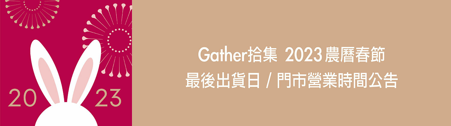 ・Gather 官網購物於1/18(三) - 1/29(日)期間訂單將暫停出貨