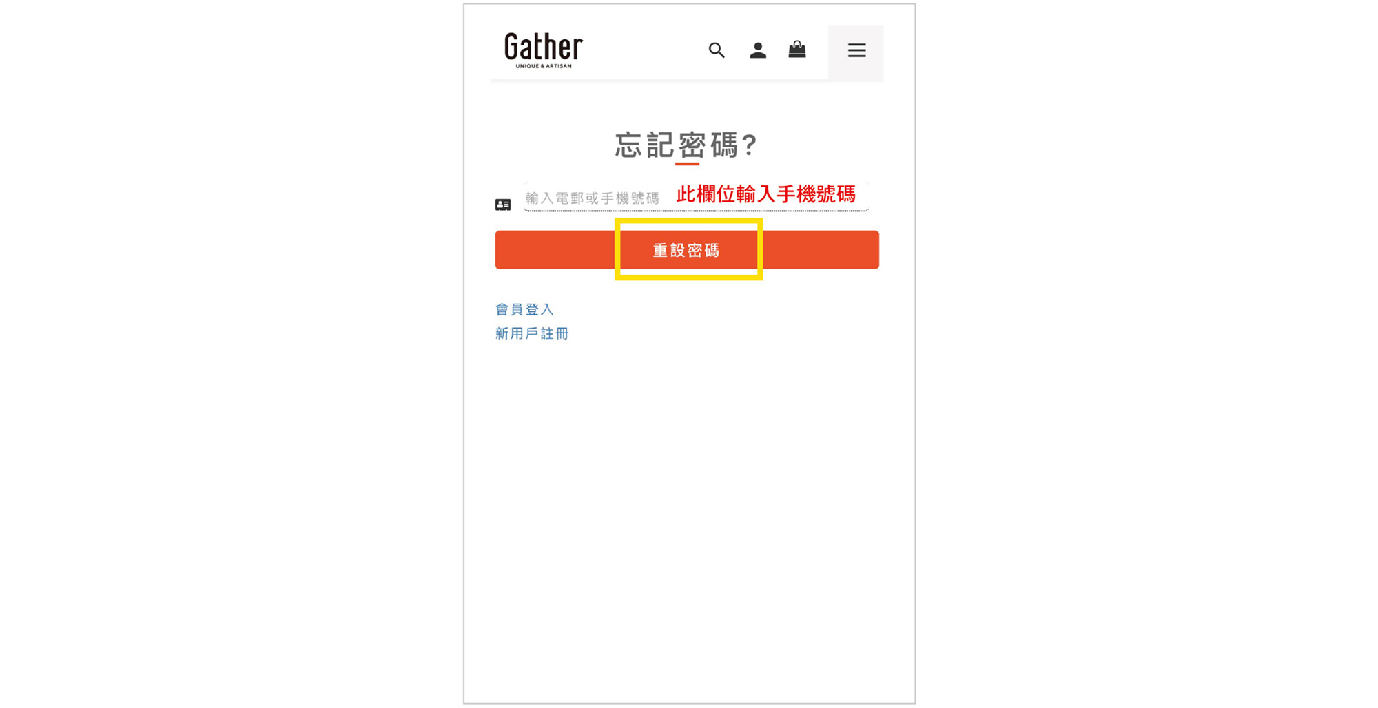 Step3:於上方欄位輸入您的"手機號碼",再點選「重設密碼」。
