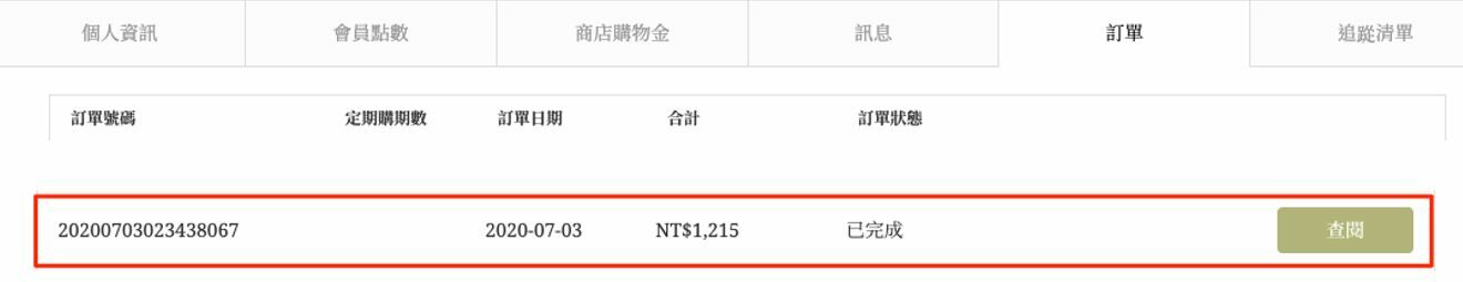 1.登入會員 >「會員中心」>「訂單」> 找到該筆訂單,點擊「查閱」: