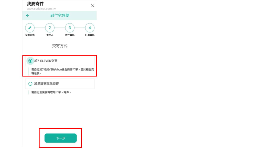 •點選「於7-ELEVEN 交寄」