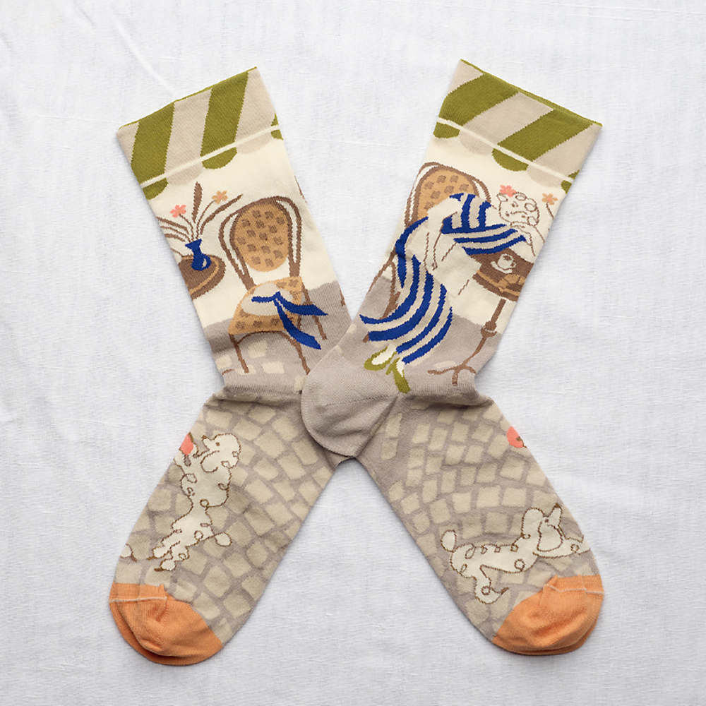 這組由法國棉襪品牌 Bonne Maison 為樂蓬馬歇百貨(Le Bon Marche)打造的「巴黎限定版」,將法式咖啡館的自在與溫暖,織進每一步輕盈腳步裡。